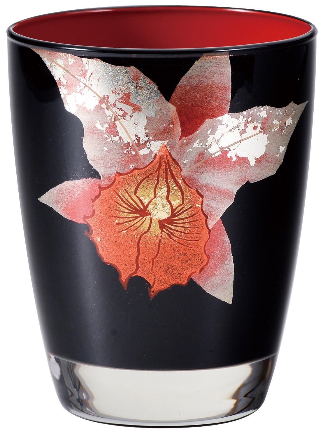 会津塗ガラス漆 黒内朱カトレアグラス