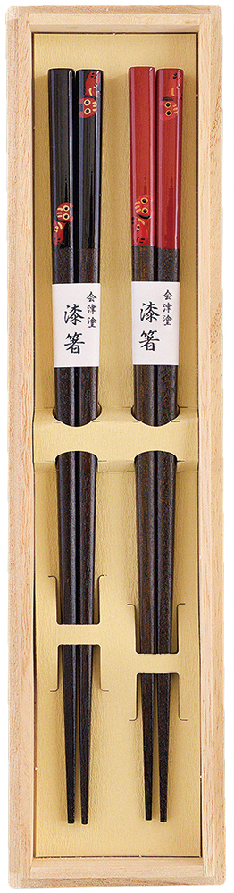 会津塗二膳組箸 赤べこ